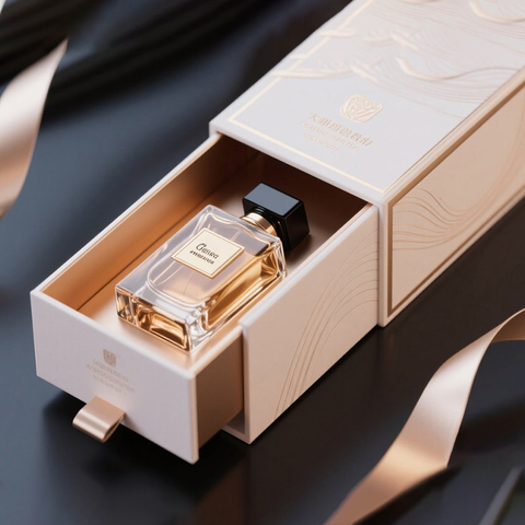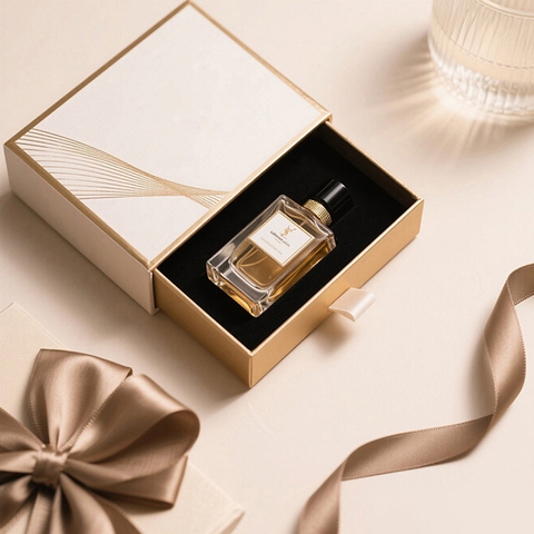 OEM High-End küçük örnek parfüm ambalaj çekmece kutuları geri dönüştürülebilir çekme lüks kağıt hediye kutusu şerit su geçirmez sünger astar