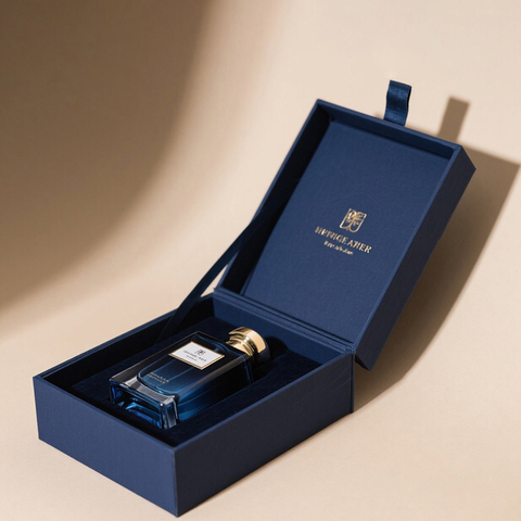 Lüks özel marka altın folyo damgalama Logo parfüm kutusu numune ambalajı el yapımı sert kutu geri dönüşümlü malzemeler hediye kutusu